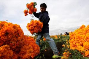 There are men on the side of the road selling flowers, like oranges, for the last-minute purchase.